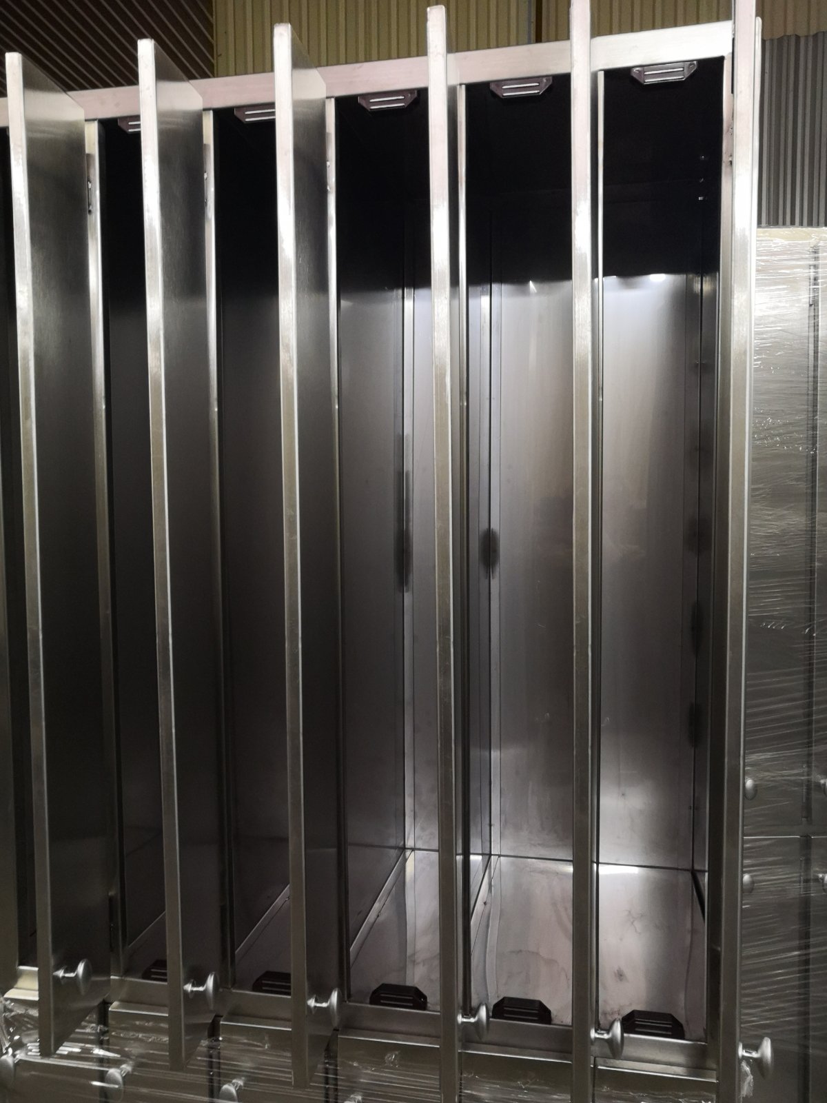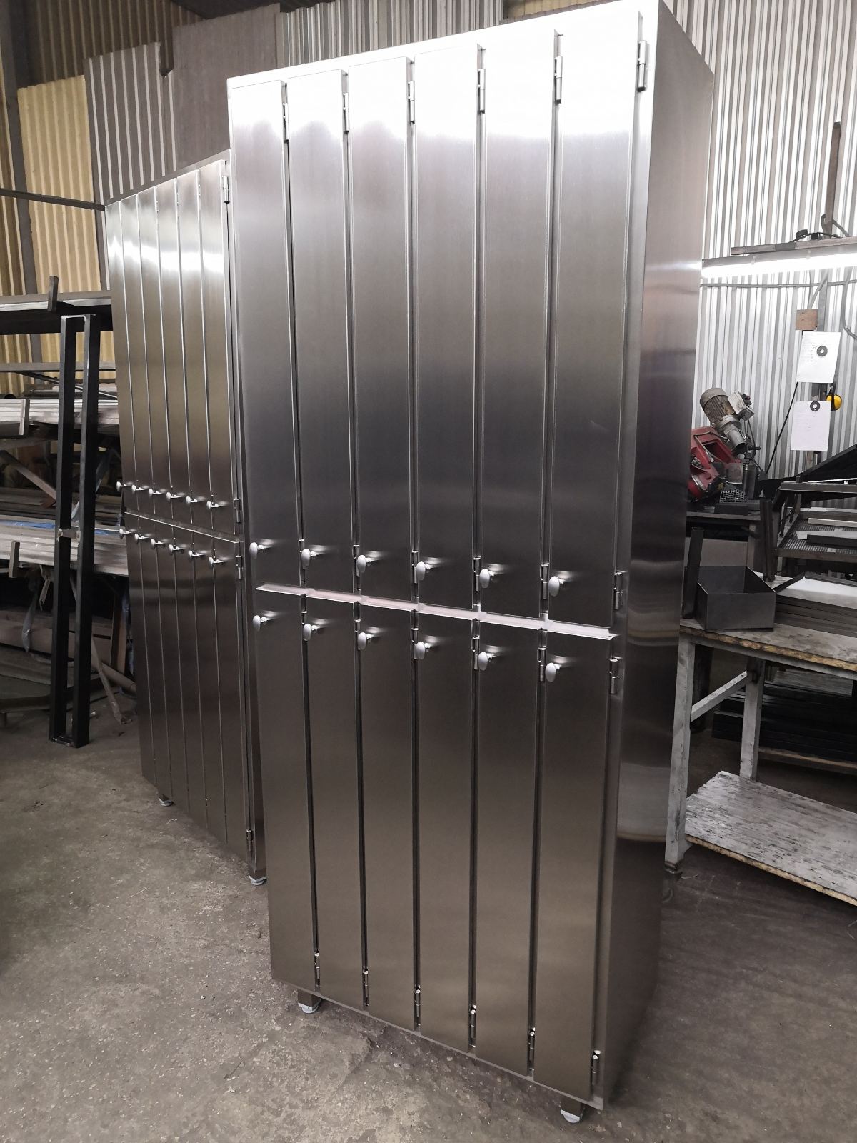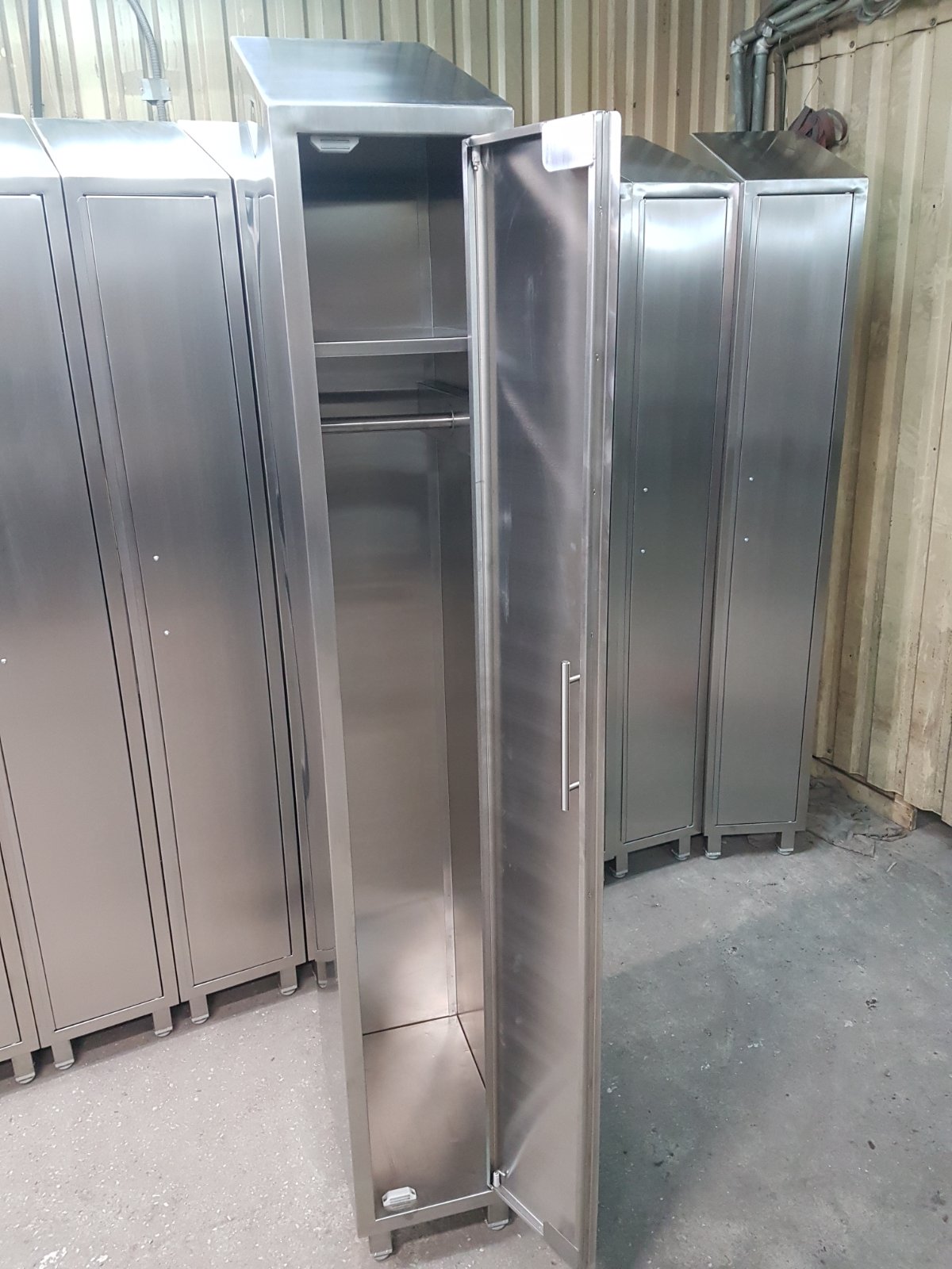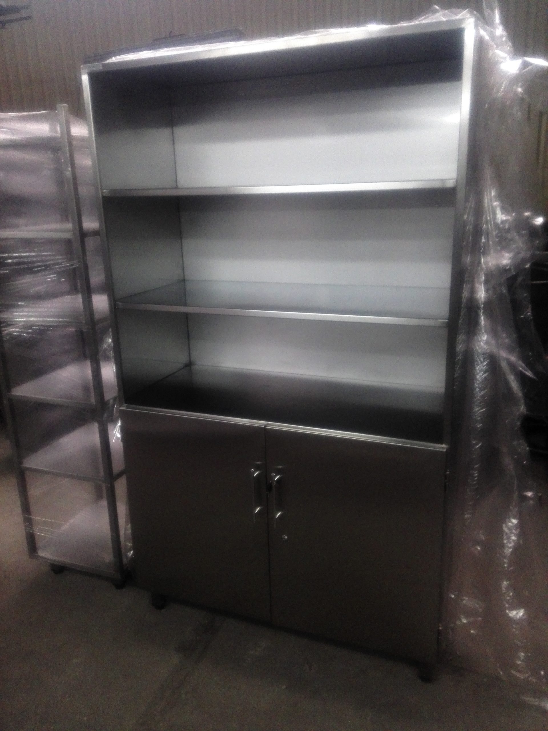 Изготавливаем любые шкафы под заказ, как с распашными дверями, так и с раздвижными. Укомплектовываем необходимым количеством полок. Корпус шкафов и усиленный каркас выполняется из качественной нержавеющей стали (Aisi 304 и 430).