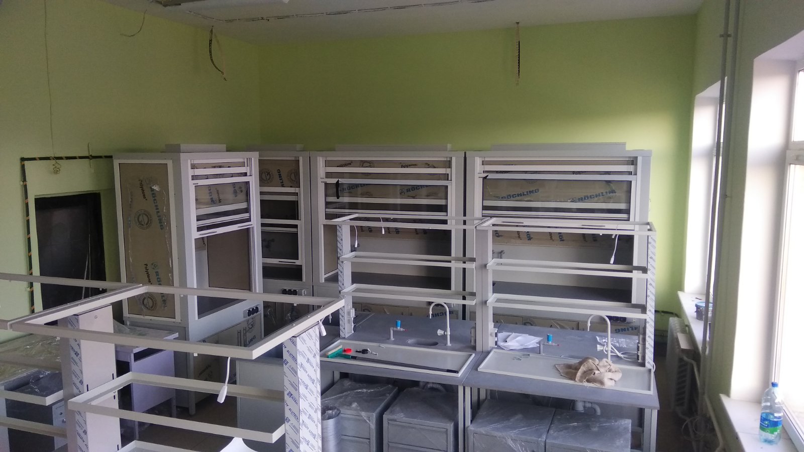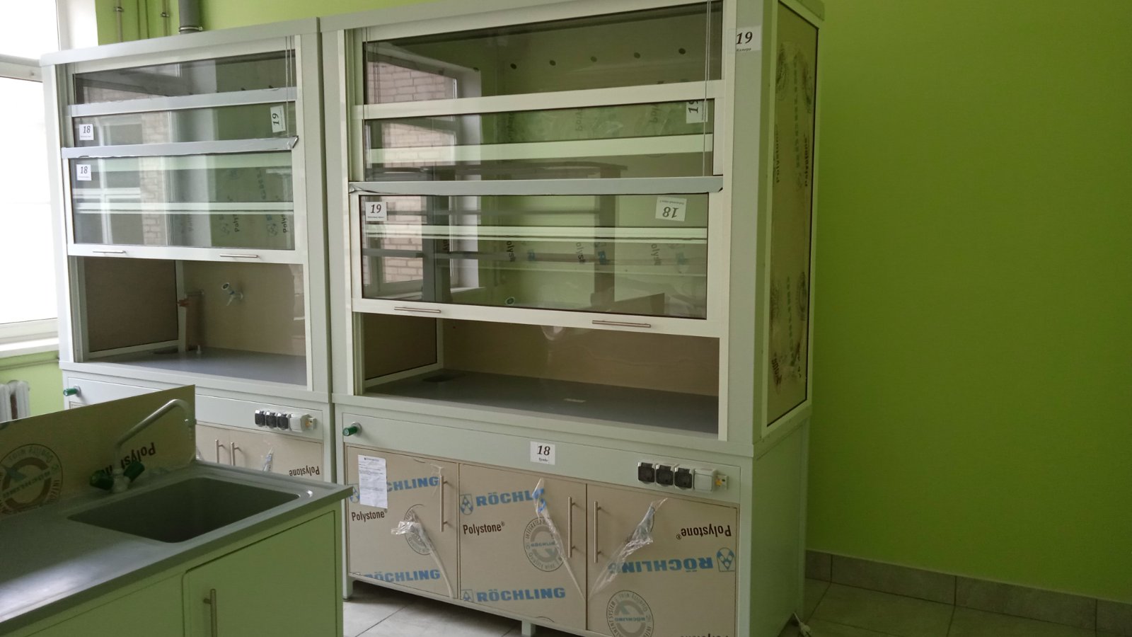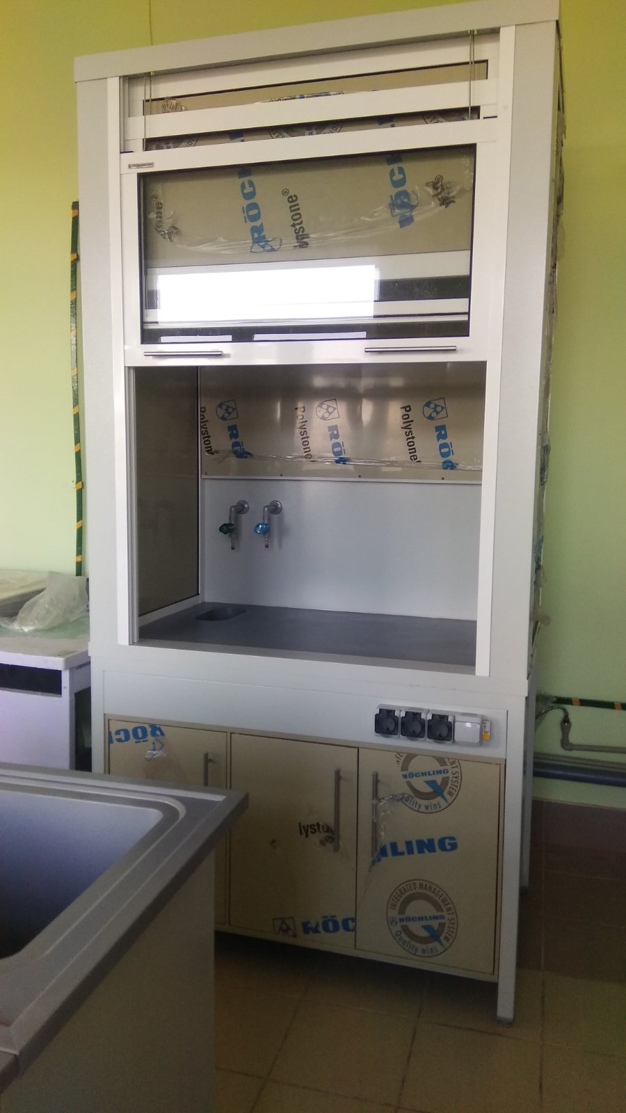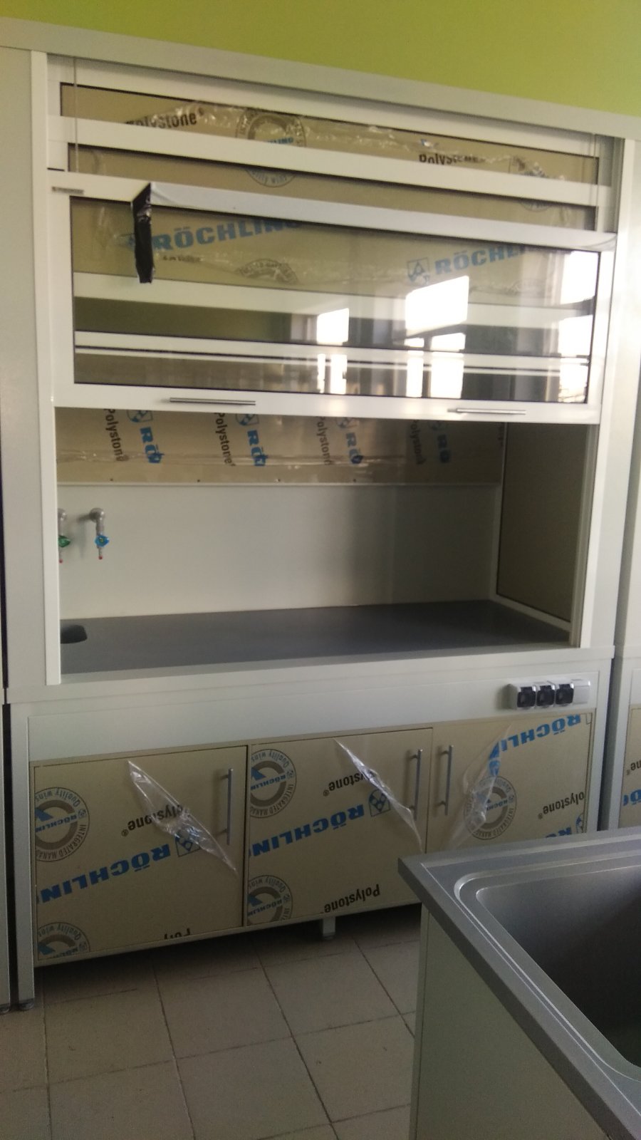 Вытяжные шкафы могут иметь различные конструктивные элементы, такие как регулируемые по высоте рабочие поверхности, встроенные освещение, сантехоборудование (специальные краны, мойки), блоки розеток и многое многое другое.